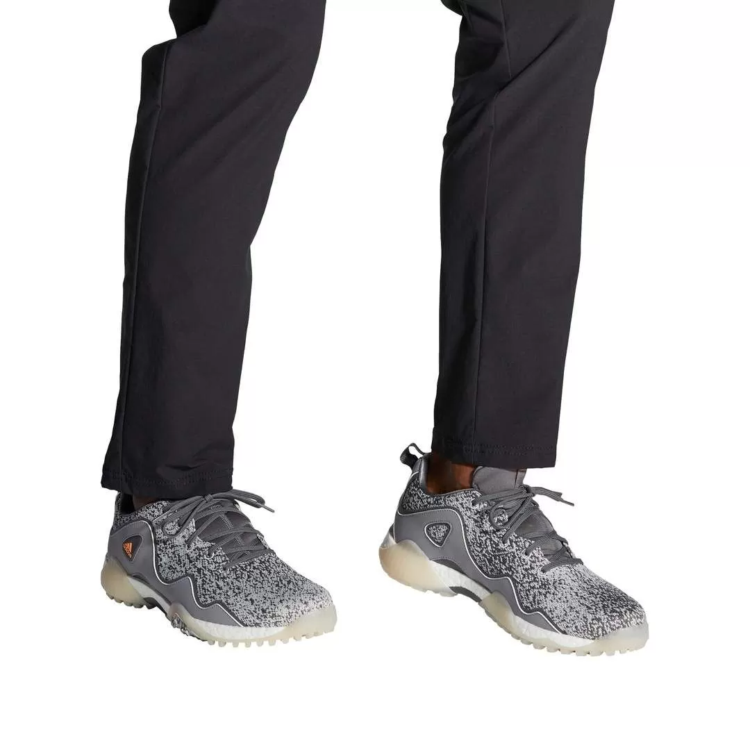 Make a disruptive statement on the course. The adidas Codechaos 21 Primeblue Spikeless Golf Shoes bring extreme comfort plus an energized feel to your game. A waterproof knit mesh upper with supportive overlays offers lightweight performance with a distinctive look. Full-length Boost gives you all-day energy on the course, and a spikeless Adiwear outsole with twist grip offers tour-level traction and stability.