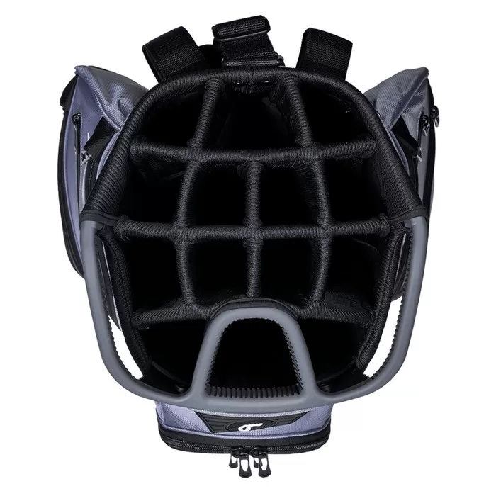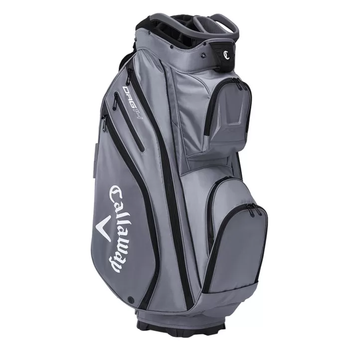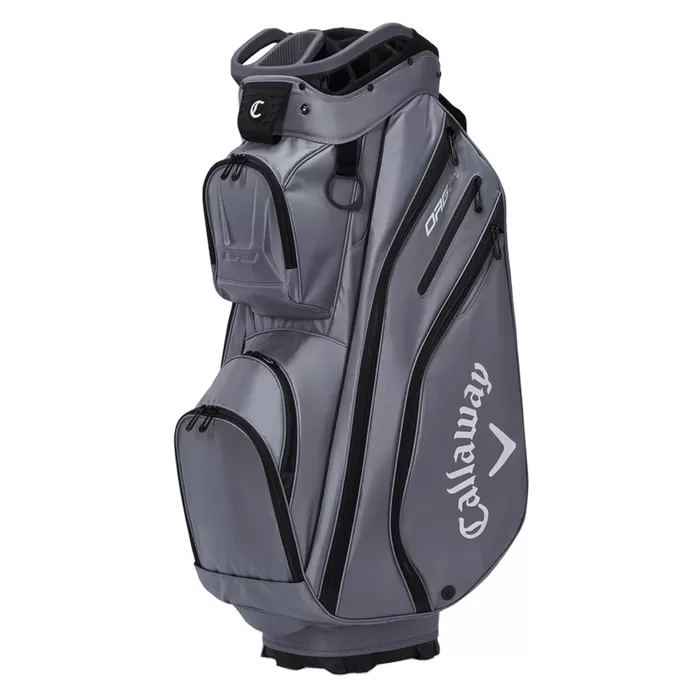 Organize your clubs with the ORG 14 Cart Bag from Callaway. A large 10.5 inch top and 14 way top dividers keep everything in order and organized. Two moulded handles ensure lifting the bag in and out of the car easy and a total of 11 pockets keep all your equipment safe and protected.