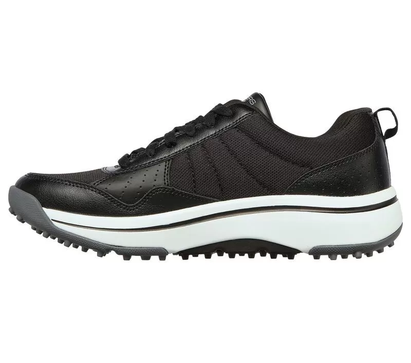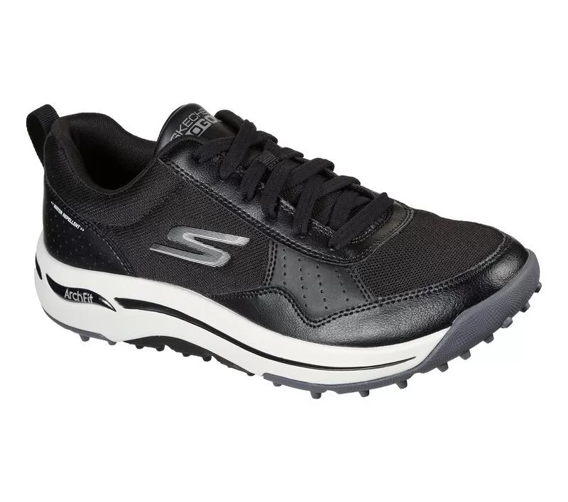 The right support makes a world of difference with Skechers GO GOLF Arch Fit® – Line Up. This lace-up spikeless golf design features a water-repellent mesh and synthetic upper with a removable Arch Fit® insole and Goodyear® Performance Outsole.
